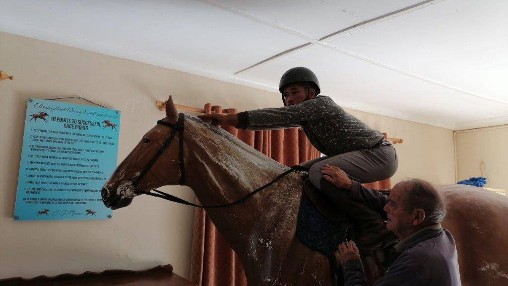 Above: James Maree helping a work rider at the Racing Development Centre (Image: supplied)
