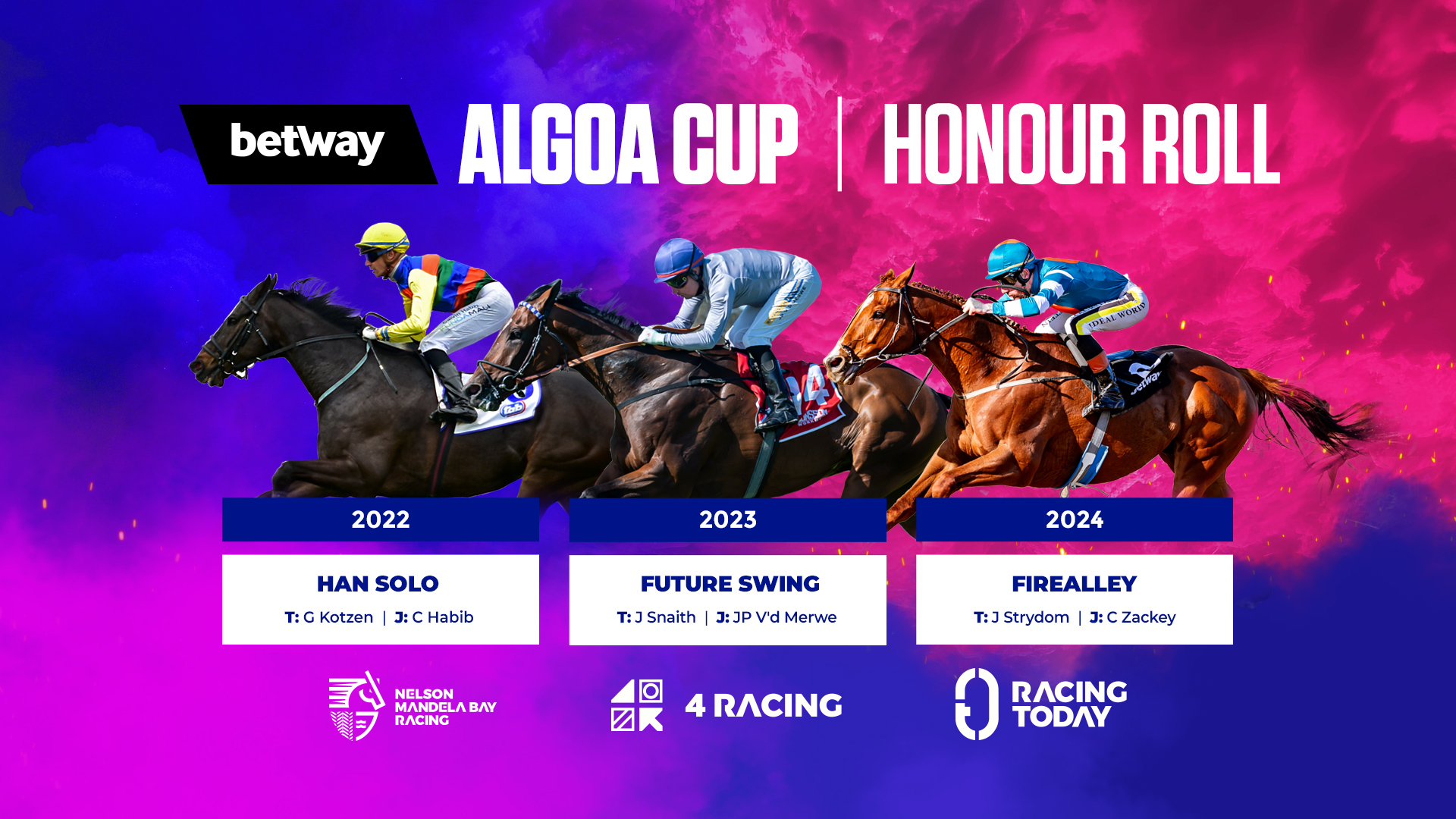 Firealley, trained by Jacques Strydom, is back to defend his title but the local onslaught will be led by the reigning East Cape Horse of the Season, My Best Shot.