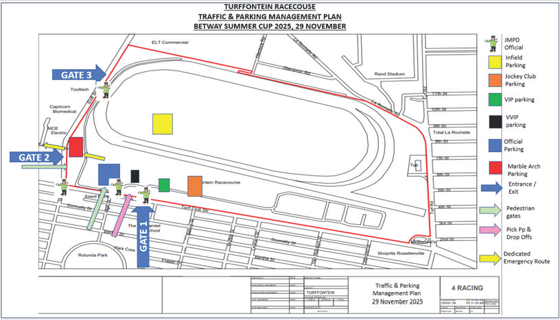 4Racing wishes to advise all guests, media, partners, and local residents of the traffic and parking management plan for the 2025 Betway Summer Cup, taking place on Saturday, 29 November.